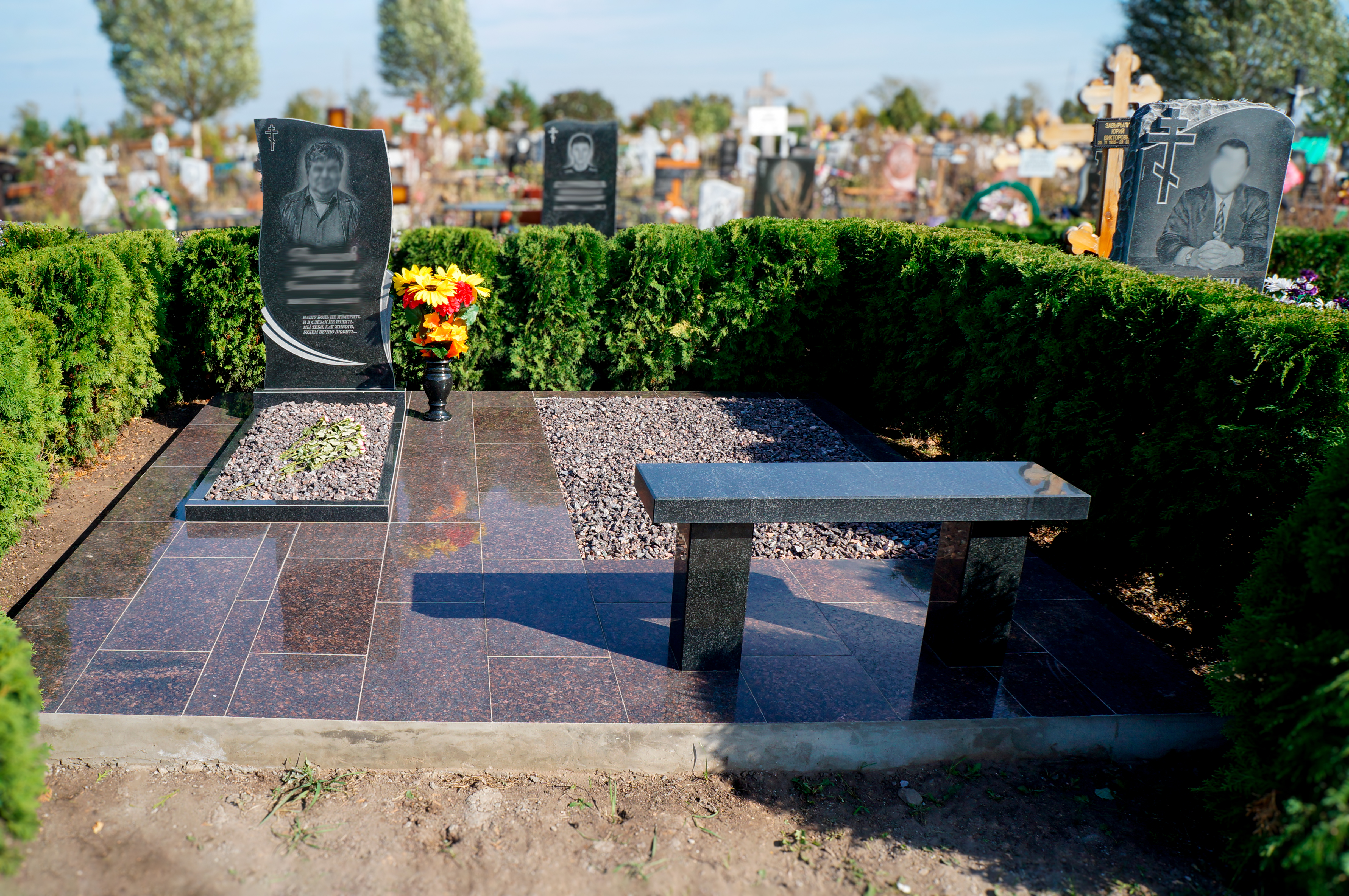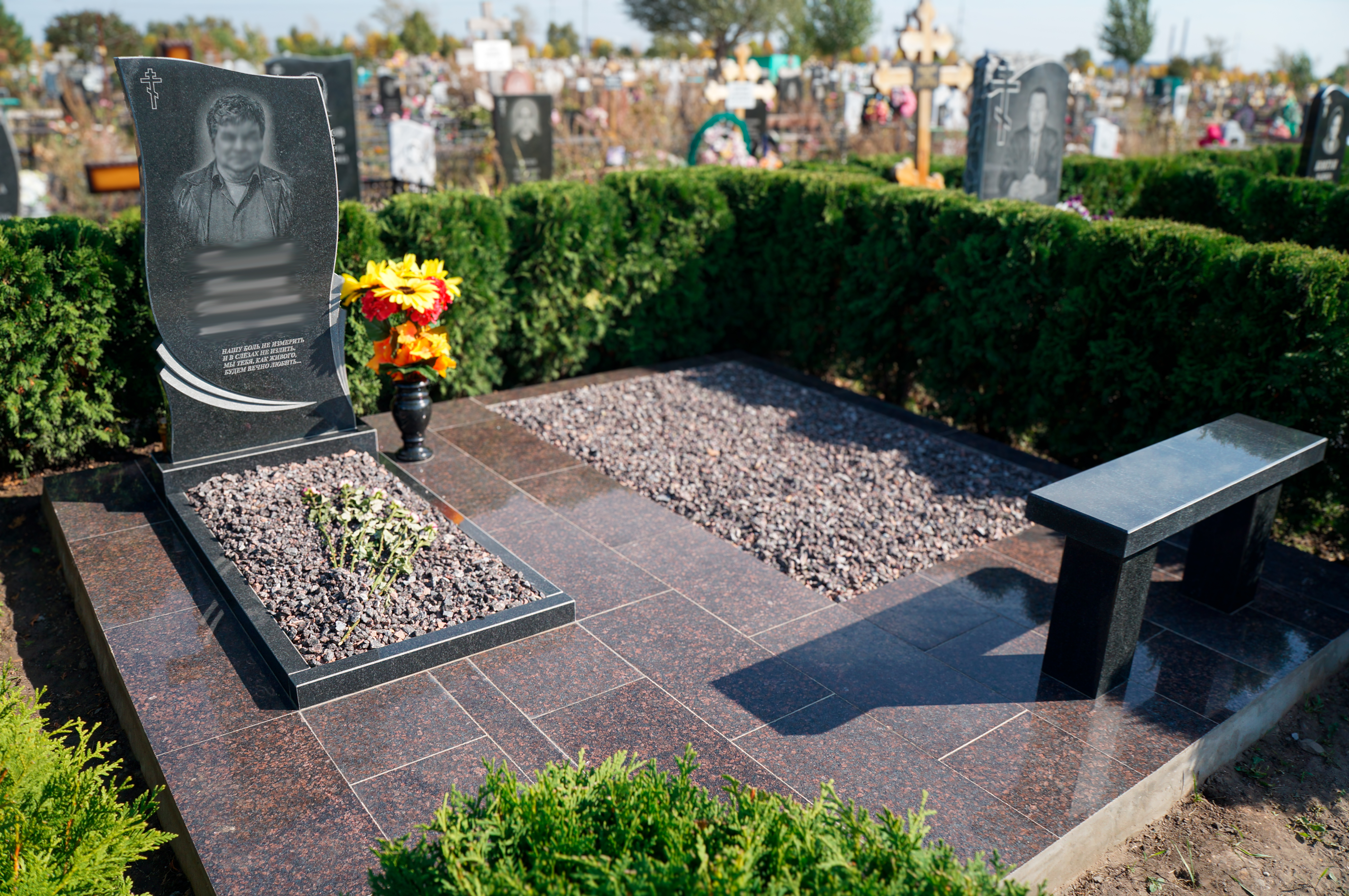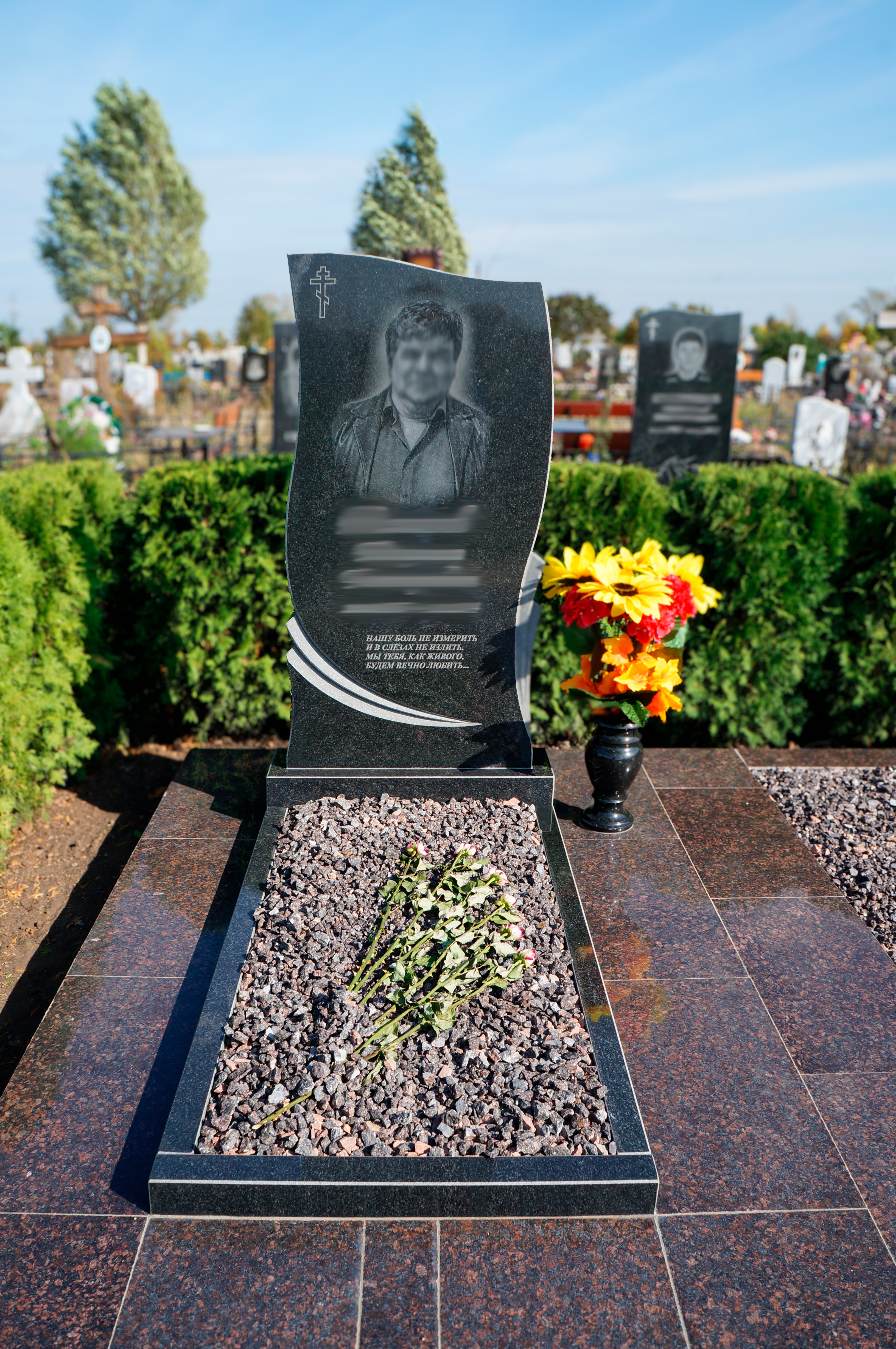 Дополнительно оплачиваются: гравировка (портрет, ФИО+даты, крестик), подготовка комплекта, установочные работы, доставка