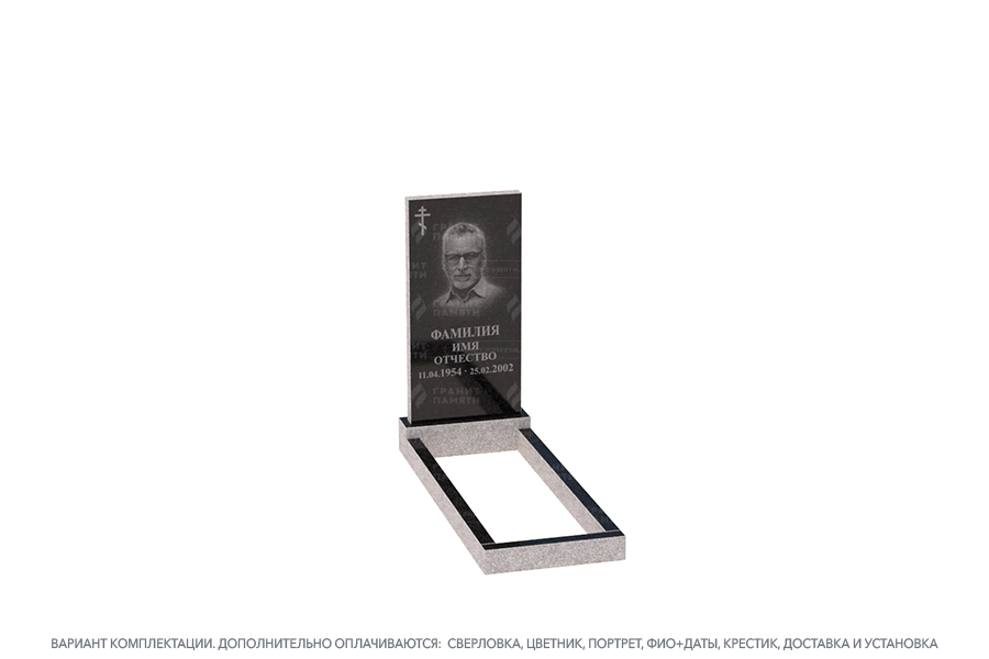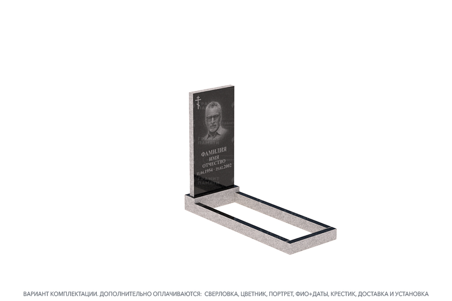- Доступен в разных комплектациях: с цветниками, с надгробными плитами и т.д.