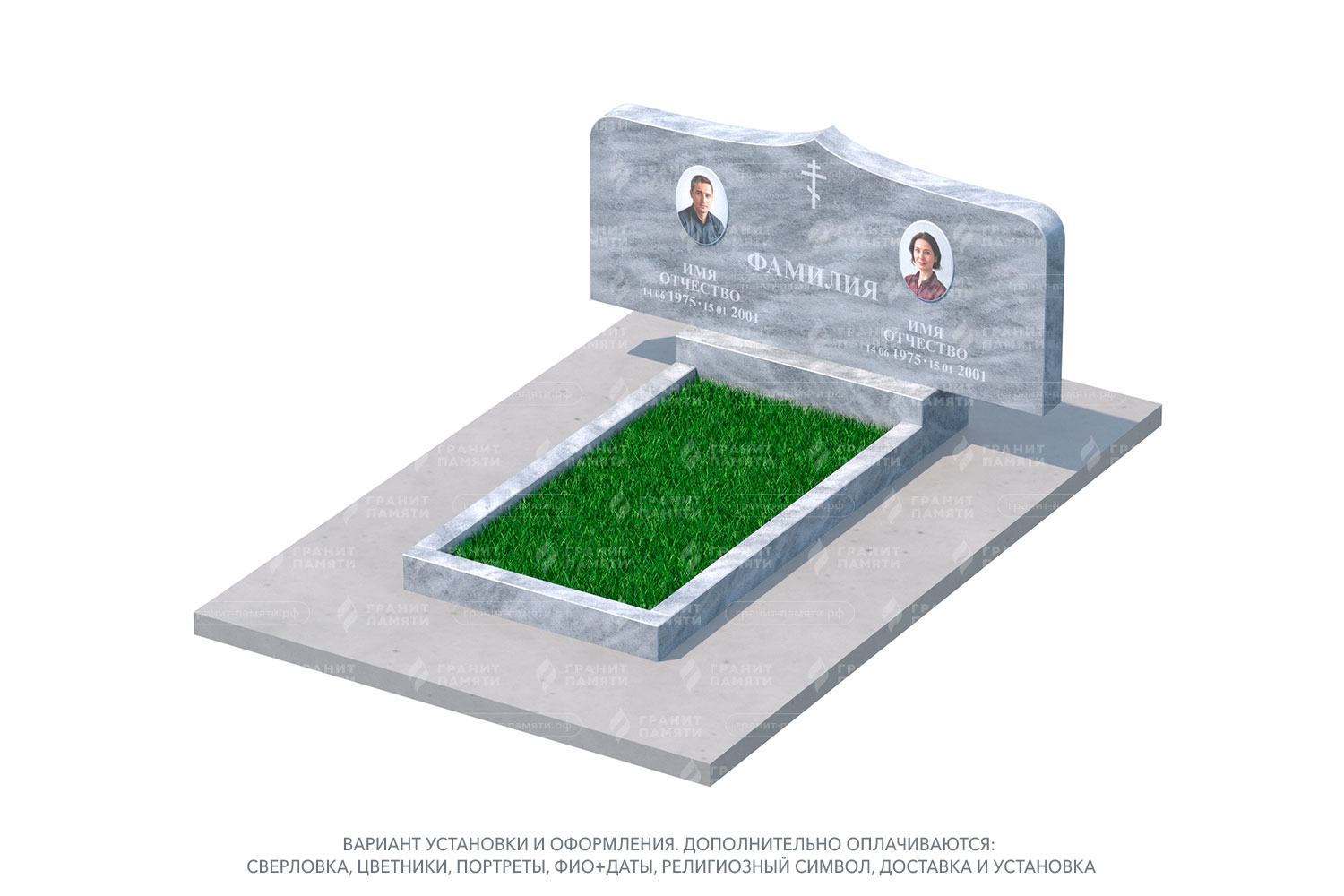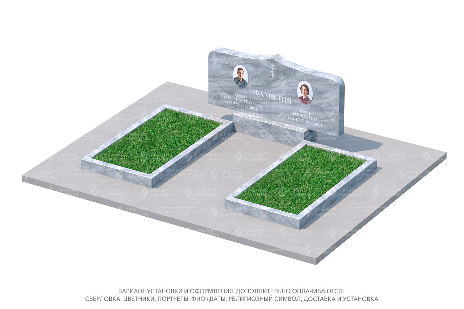 Мраморный памятник с общим цветником